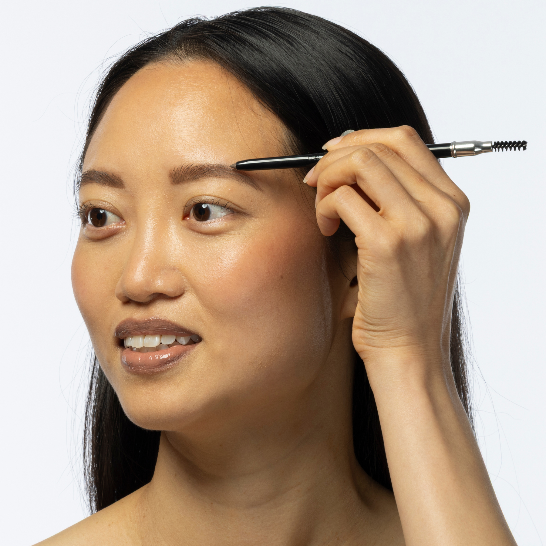 Use small, brush-like strokes following the natural brow line.
