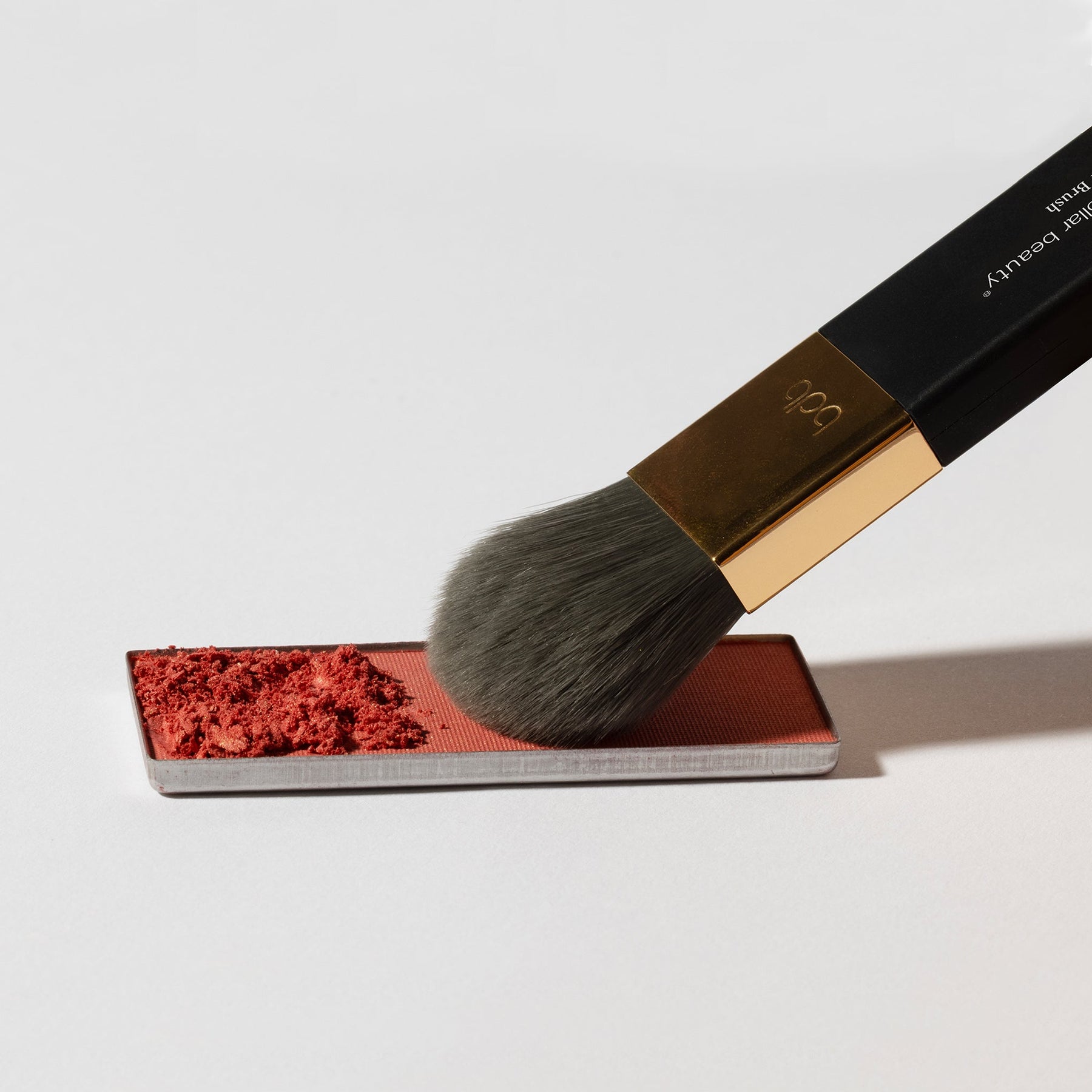 With a Powder Brush, sweep Blush onto the apples of the cheeks